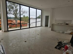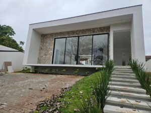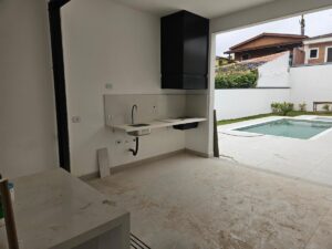 Casa com sala ampla e cozinha americana, lavabo, lavanderia, 3 suítes, escritório,