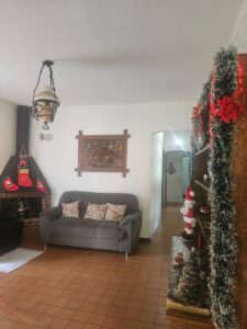 O imóvel conta com 1 suíte e 2 dormitórios, além de sala com lareira e sala de TV, oferecendo conforto para o dia a dia. A área social é bem distribuída, com copa, cozinha e banheiro social.